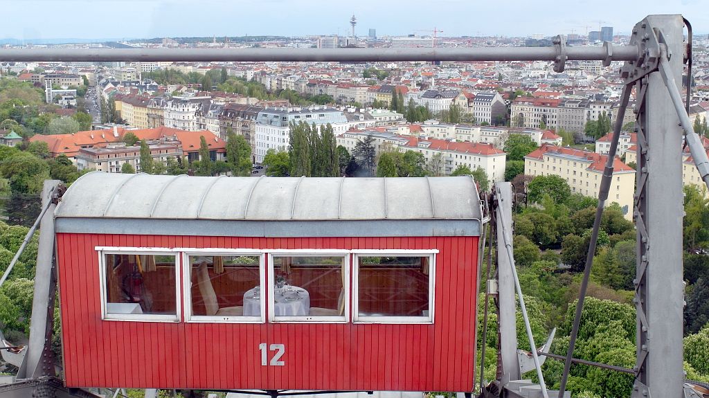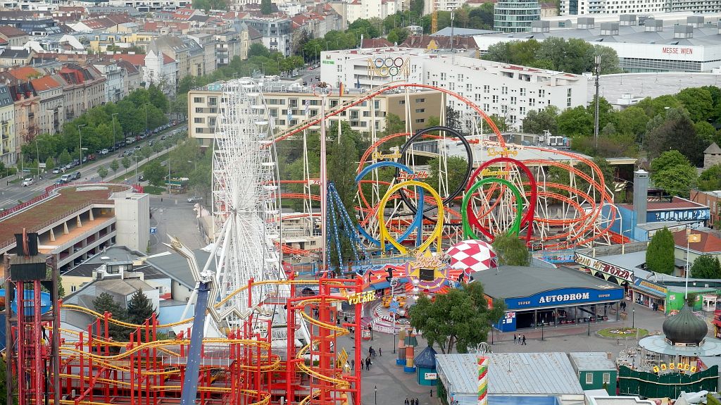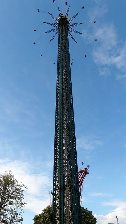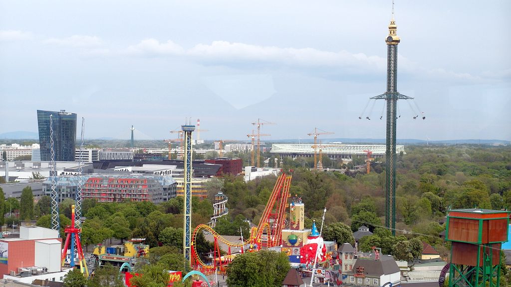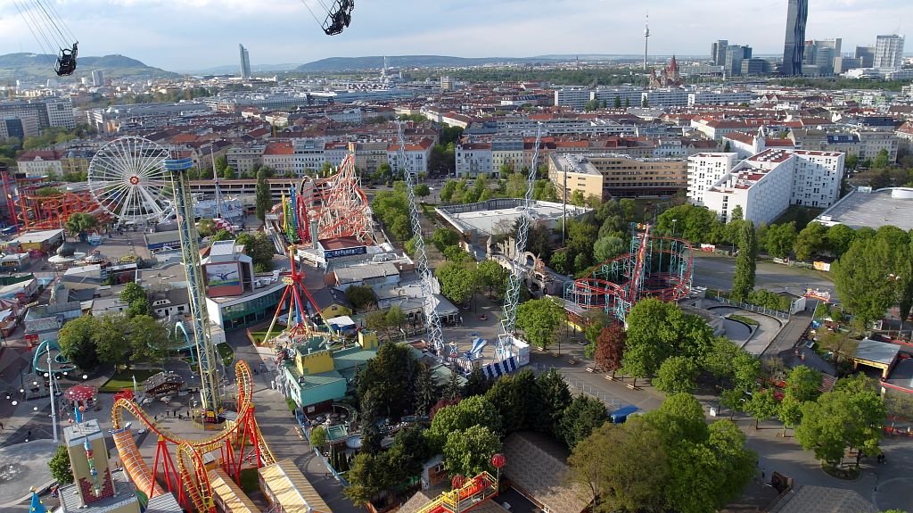 Nachmittags besuchen wir auf dem Heimweg noch einmal den Prater und dort den Praterturm. Von diesem Kettenkarussell aus hat man den ultimativen Blick über den Prater und die ganze Stadt.