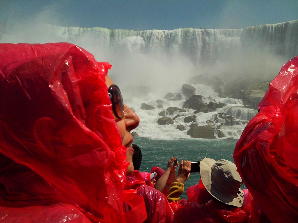 …und dabei den abwechselnd von amerikanischer und kanadischer Seite startenden Booten zuschauen, die zur Gemeinschaftsdusche fahren.