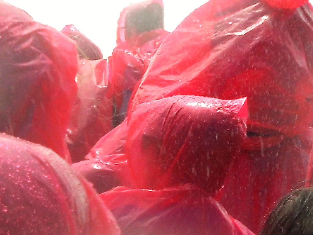 Das muß natürlich auch selbst ausprobiert werden… beim Boarding gibt es einen roten Plastikponcho, der das schlimmste verhindern soll…