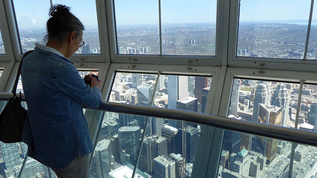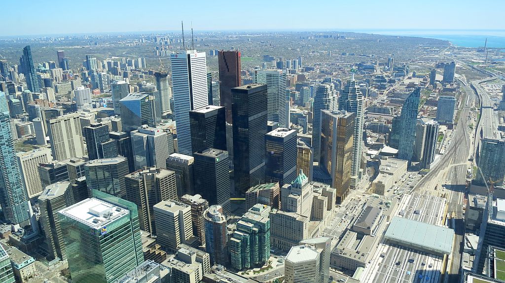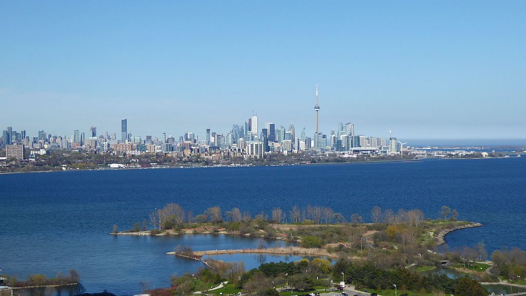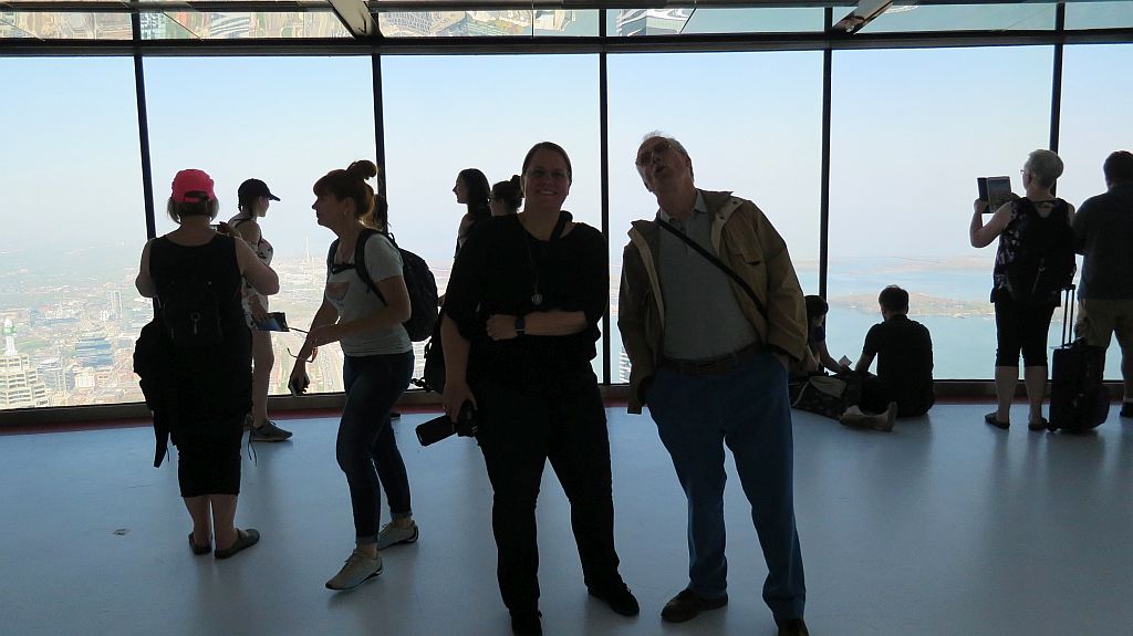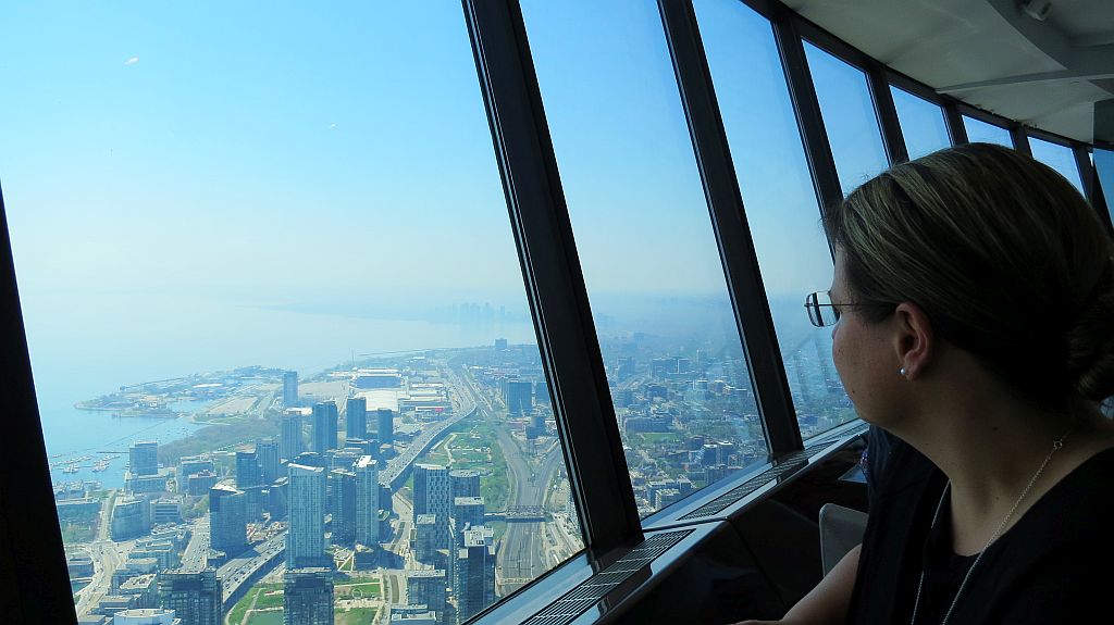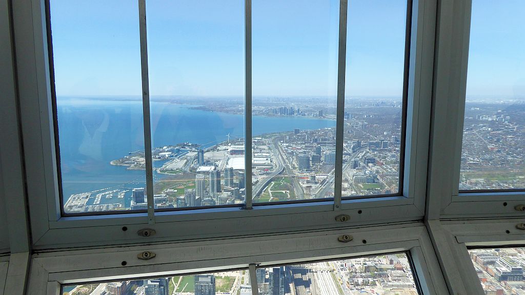 Der Blick ist bei dem klaren Wetter beeindruckend, der Großraum Toronto erstreckt sich allseitig bis zum Horizont…