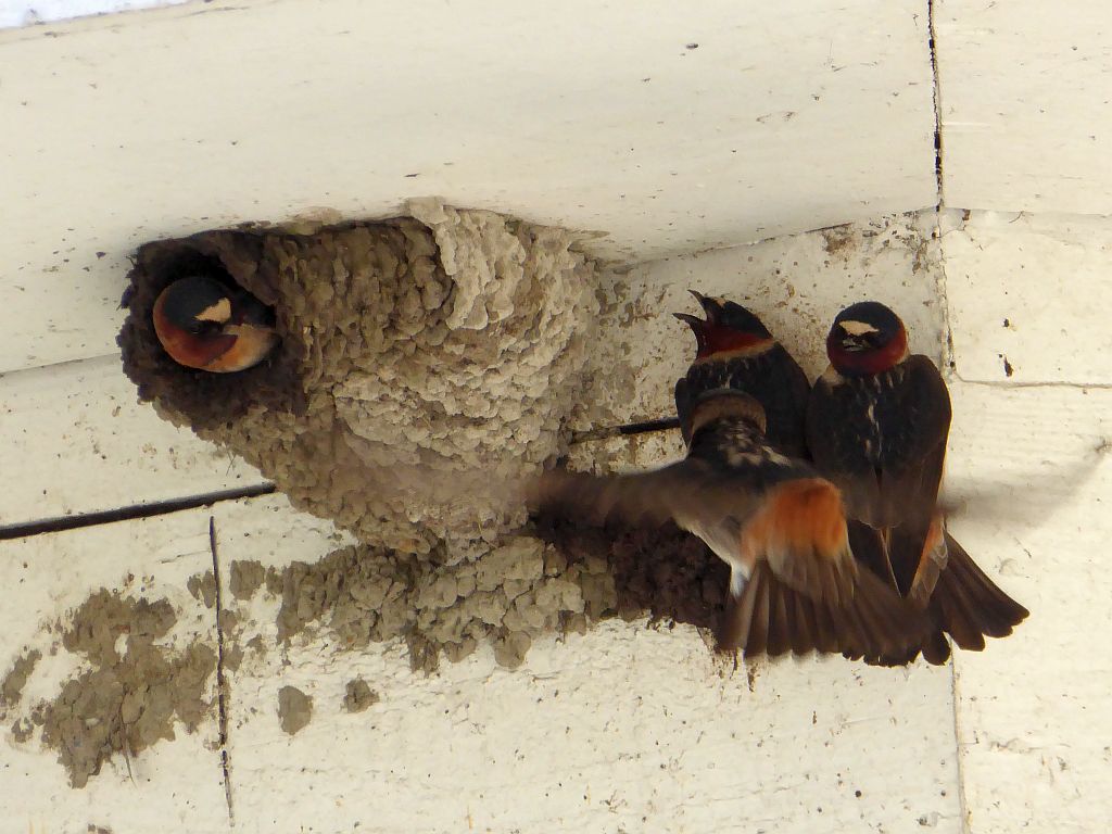 Unter dem Dach eines Pavillions bauen die hier ansässigen Rauchschwalben ihre Nester…