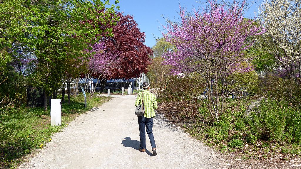 Heute wollen wir uns die Steilklippen im Osten Torontos ansehen, die Scarborough Bluffs. Auf dem Hinweg machen wir einen Schlenker zu den Edwards Gardens, einem Teil des botanischen Gartens. Leider hat der Saisonbetrieb dort noch nicht begonnen, weshalb einige Teile noch gesperrt sind, aber einige Sachen kann man sich trotzdem schon ansehen, wie z.B. die Judasbäume, die es hier auch in einer weiß blühenden Variante gibt.
