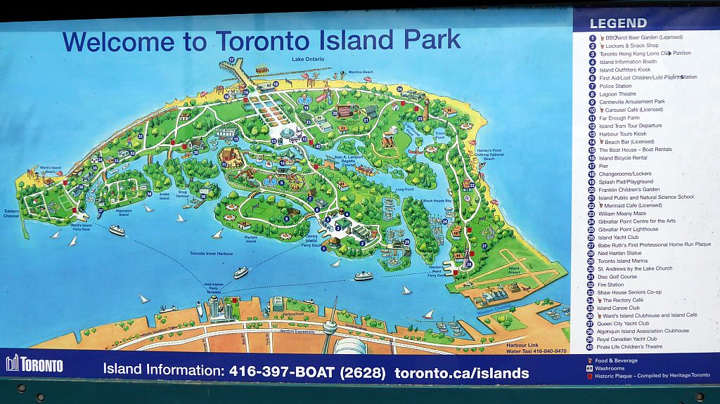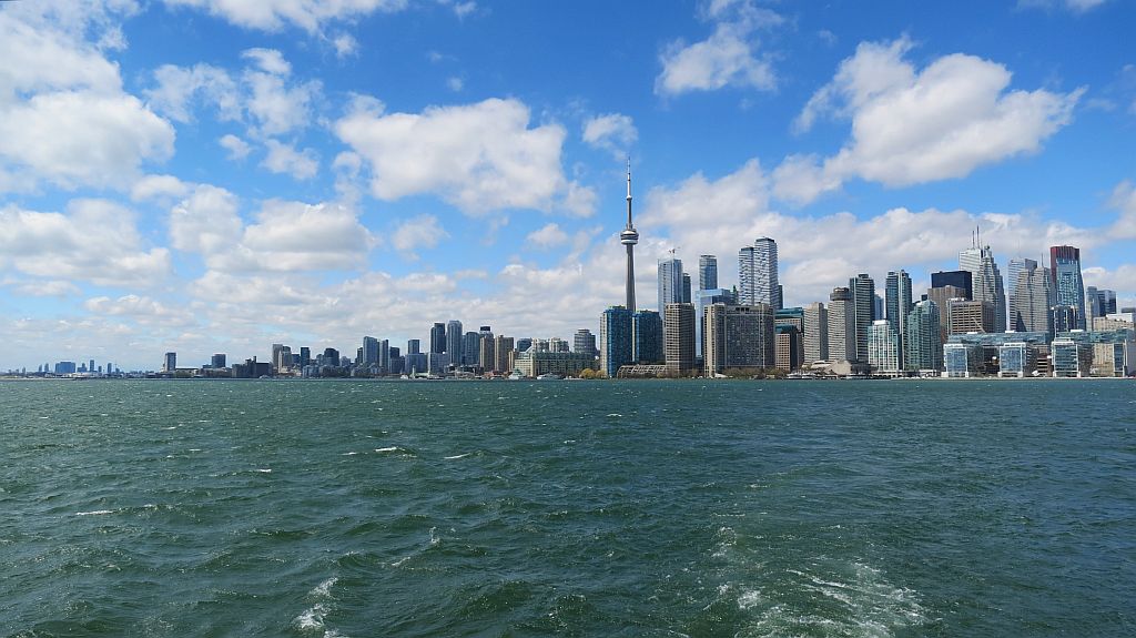 …von da sind wir bald an dem Fähranleger, wo die Boote zur vorgelagerten Insel Toronto Island abfahren.
