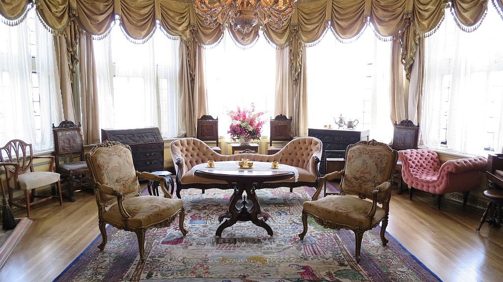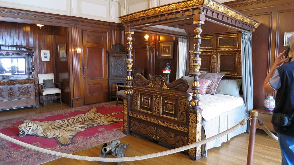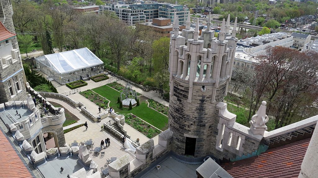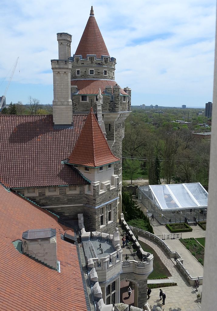 Heute ist das extrem wechselhafte Wetter mal bedeckt und etwas kühler, weshalb wir beschließen, die heutige Schlacht im Saale stattfinden zu lassen. Da die Fahrt mit der Straßenbahn zwar bedingt romantisch, ansonsten aber hauptsächlich recht langsam ist, fahren wir mit dem Auto zum schloßähnlichen Casa Loma, was immerhin auch eine dreiviertel Stunde dauert. Es wurde vor dem ersten Weltkrieg von einem kanadischen Millionär gebaut und erinnert etwas an das Hearst Castle in Kalifornien, das etwa 10 Jahre später erbaut wurde und noch deutlich pompöser ist.