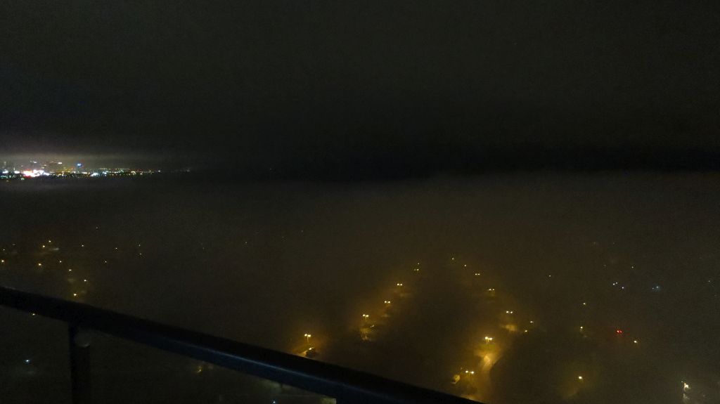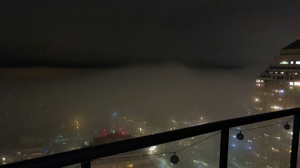 Am Nachmittag klart es etwas auf und wir machen einen kleinen Spaziergang am Seeufer, gegen Abend zieht dann eine ziemlich dichte ‚Suppe‘ auf, die kaum Skyline und Humber Bay oder unser benachbartes Hochhaus erkennen läßt
