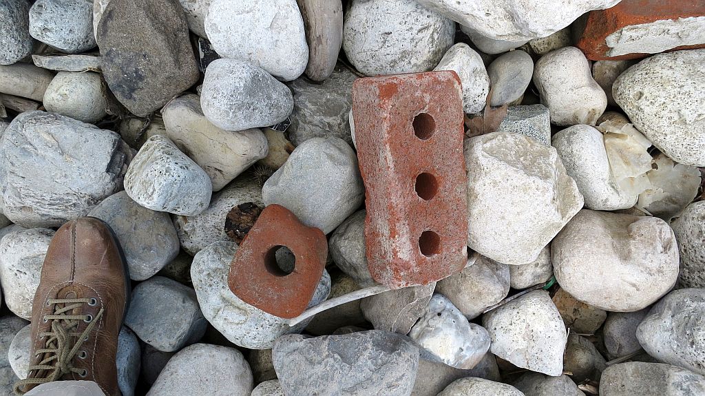 Auf irgendeinem Wege sind recht viele Backsteine im See gelandet, die durch die vielen anderen – teilweise sehr harten – „Bachsteine“ im Laufe der Zeit rund geschliffen wurden… und dann Kerzenständer heißen.