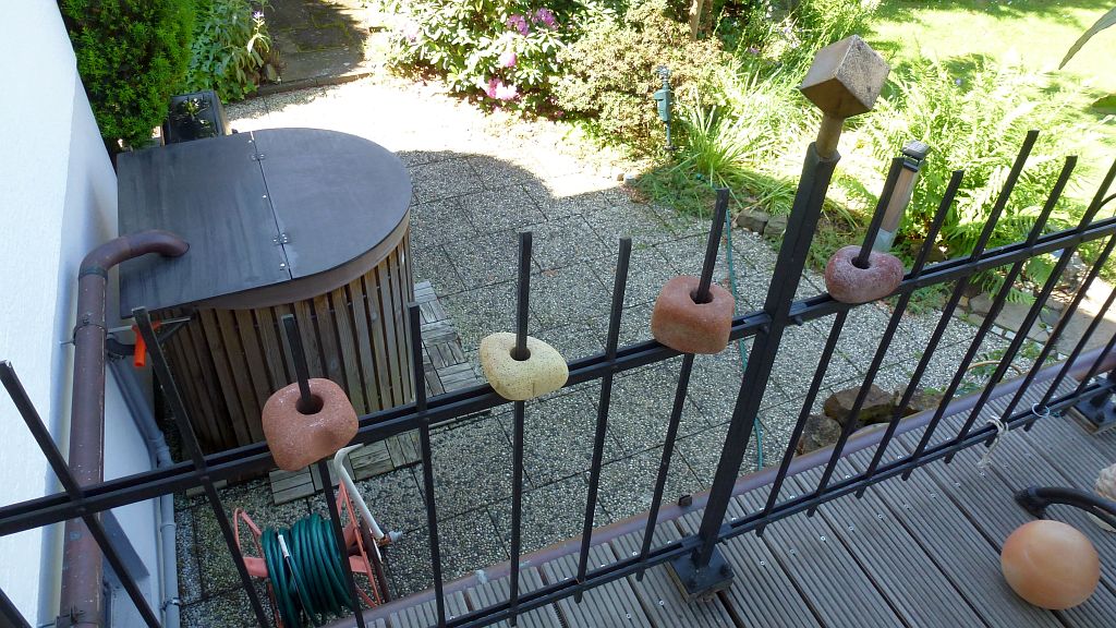Jetzt zieren vier rund geschliffene Backsteine aus dem Ontario-See als Andenken zu Hause das Geländer unserer Hochterrasse. ![]()