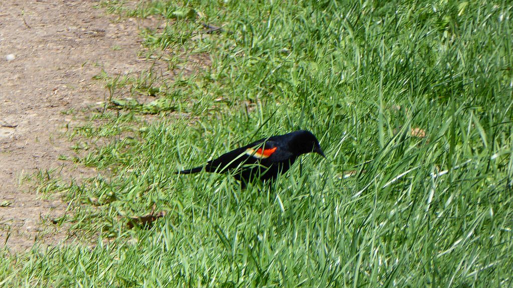 Im Humber Bay Park gibt es außer einem grandiosen Blick auf die Skyline auch jede Menge Vögel, darunter auch den Rotschulterstärling mit weniger melodischer als kräftiger Stimme.