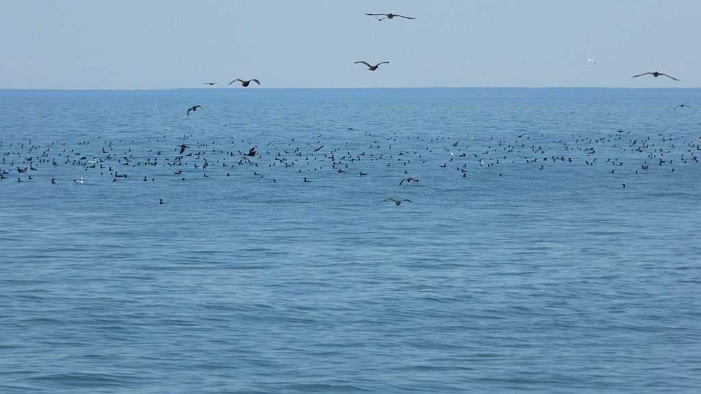 die sich in großer Zahl draußen auf dem Meer sammeln