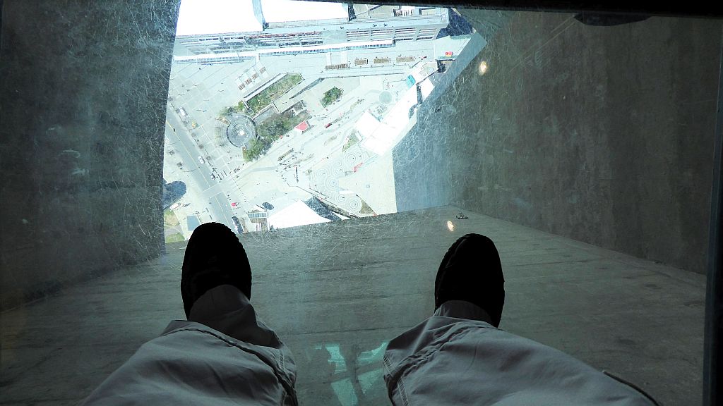 Nach dem Essen darf man noch auf 2 der Aussichtsplattformen, eine davon hinter Glas…