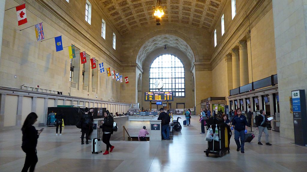 In Toronto gab es dann eine ziemlich langwierige Einreiseprozedur, die mit Self Passport Control am Automatenscanner begann und beim üblichen Immigration Officer noch lange nicht endete, denn am baggage claim war zwar unser Flug angezeigt und das Band lief auch mehrmals an, aber es tat sich nicht wirklich was. Als dann nach einer weiteren halben Stunde endlich die ersten Koffer aufs Band purzelten, hatte die Einreise schon weit über eine Stunde gedauert.