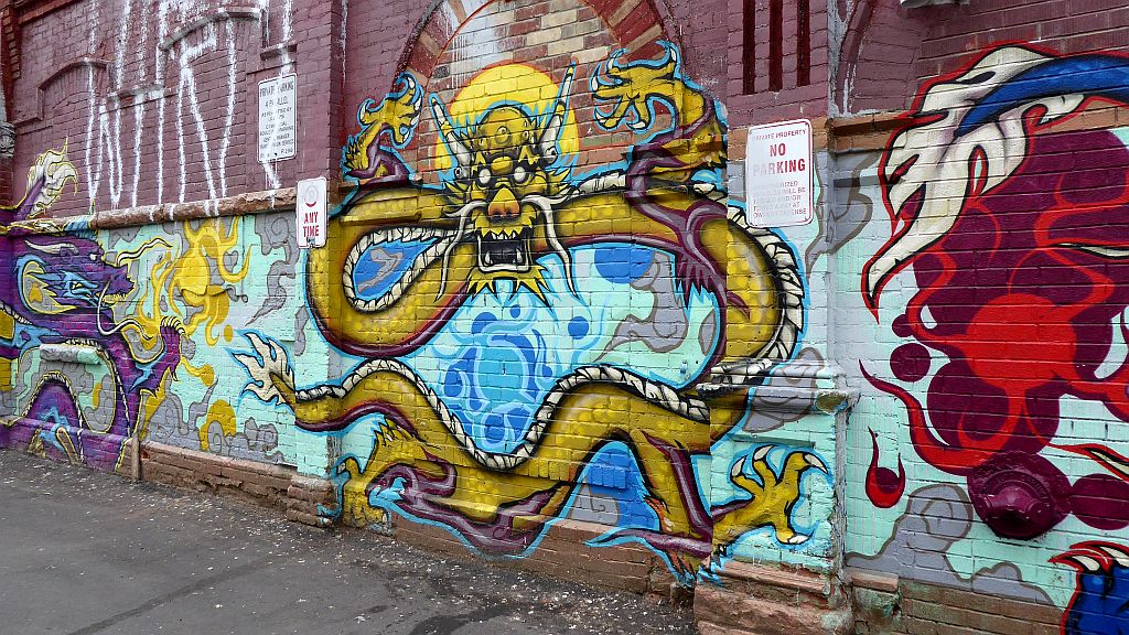 Hier gibt es etliche echte Graffitis, die weit über das bei uns übliche Geschmiere großer Buchstaben hinausgehen…