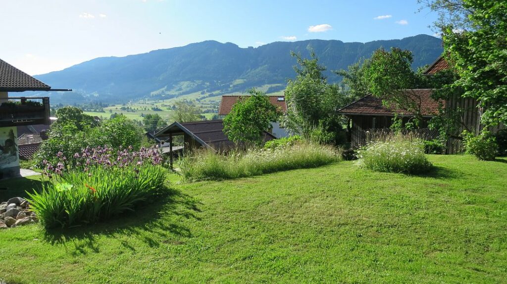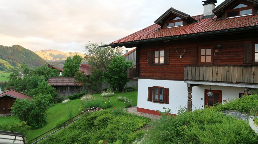 Eine Lange Fahrt – rund 600km – die wir trotz einigen kleinen Staus einigermaßen gut hinter uns gebracht haben. Wenn man die Autobahn dann verlassen hat und sich durch die Landstraßen arbeitet, hört die bekannte Welt auch gleich auf. Überall grüne Wiesen, viieele Hügel und Bauernhöfe, auch einige Seen. Unser Weg führt um die Nordspitze des Forggensees herum und dank Navi finden wir das Bergchalet auch problemlos. Nach einem freundlichen Empfang muß das Gepäck die zahlreichen Stufen hochgekeult werden…