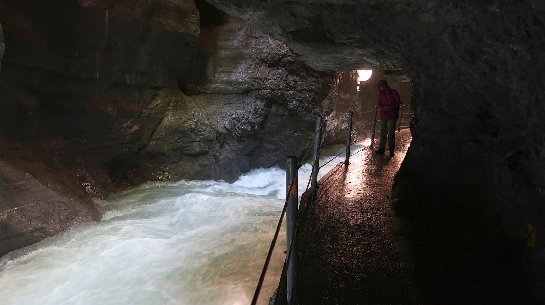 Tatsächlich wird man nicht nur von der Partnach naßgespritzt, die unten mit ziemlichem Getöse durchrauscht…