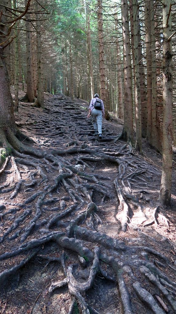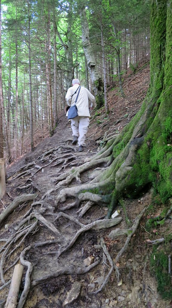 …daß es besonders an Hanglagen auf den nassen Wurzeln ziemlich glatt sein kann.