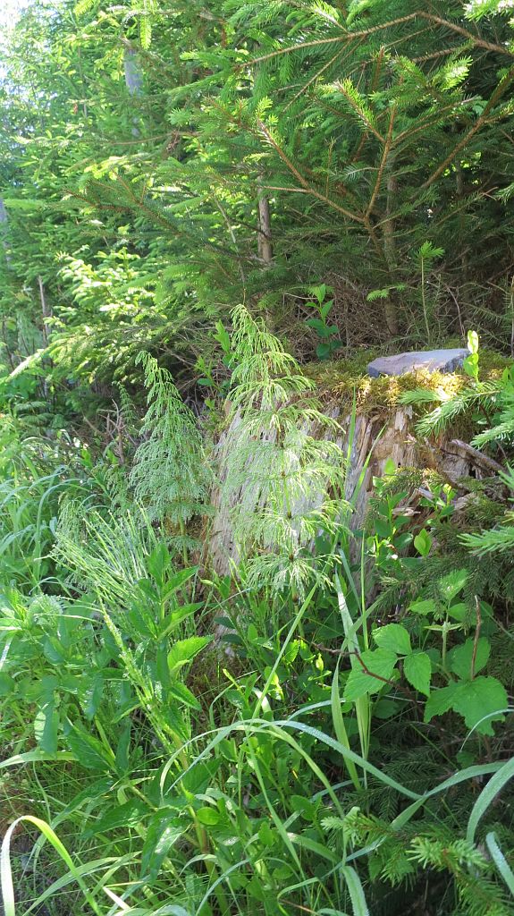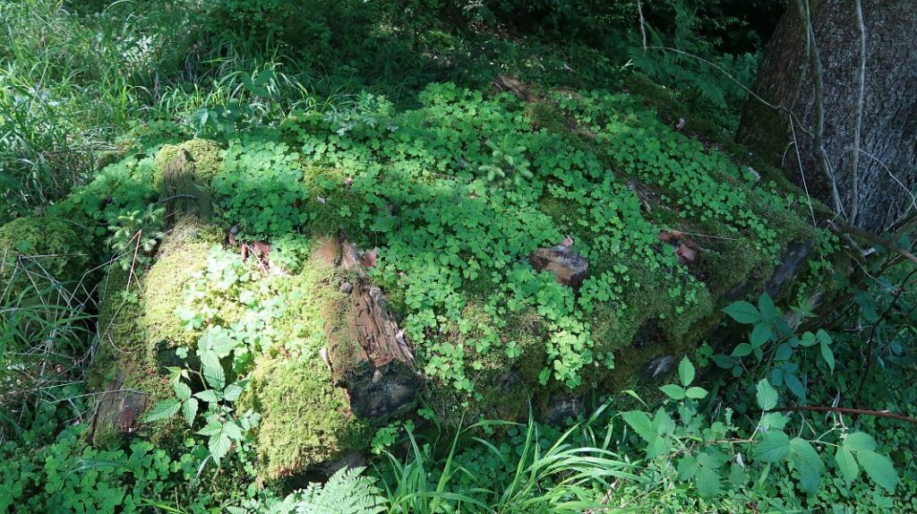 …gibt es verwaiste Brennholzstapel, auf denen sich inzwischen neue Bäume ansiedeln.