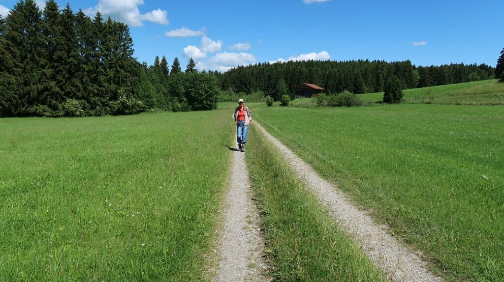 Bevor die Wanderstrecke in Richtung Forggensee abbiegt, durchquert man ein kleines Waldstück…