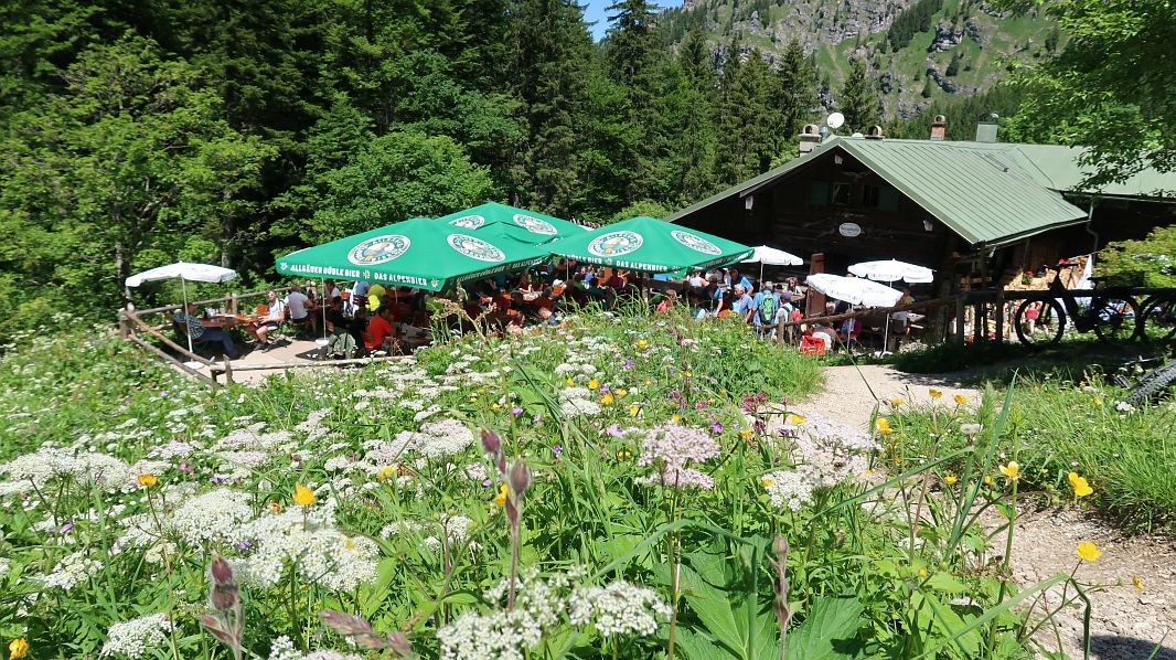 Dann erreichen wir nach ca,12km die Kenzenhütte, wo – bedingt durch Sonntag und Kaiserwetter – schon kaum noch Platz zu bekommen ist.