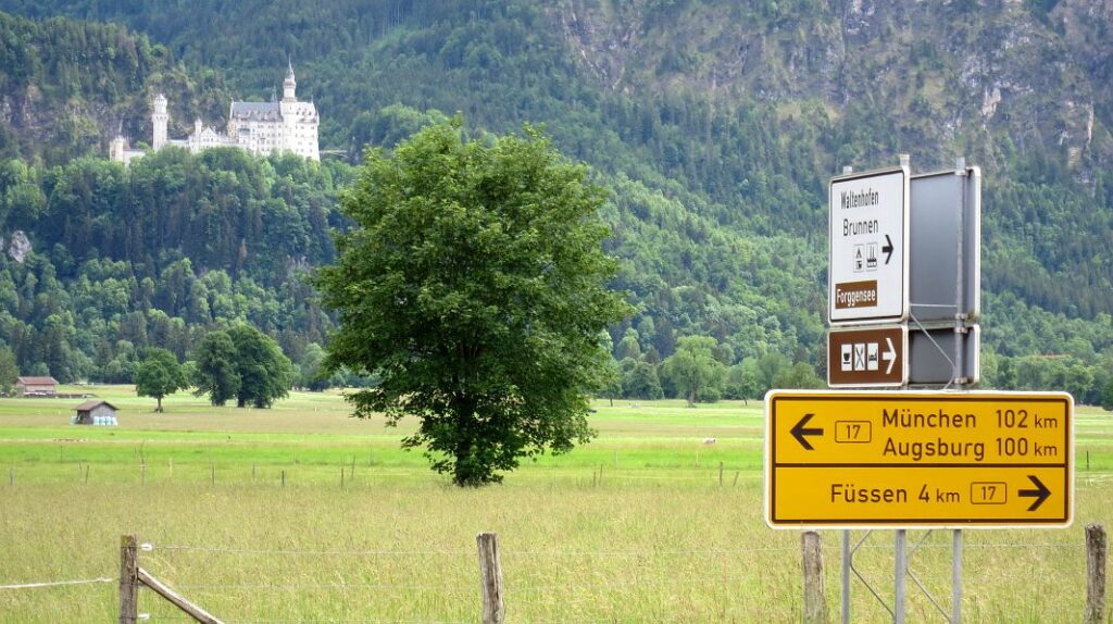Die Stadt ist ziemlich touristisch und wirkt selbst jetzt in der Vorsaison stellenweise schon übervölkert, weshalb wir nicht lange bleiben und über Schwangau wieder in unser lauschiges Eschenberg zurückfahren. Dabei kommen wir auch etwas näher an den berühmten Ludwig-Schlössern vorbei.