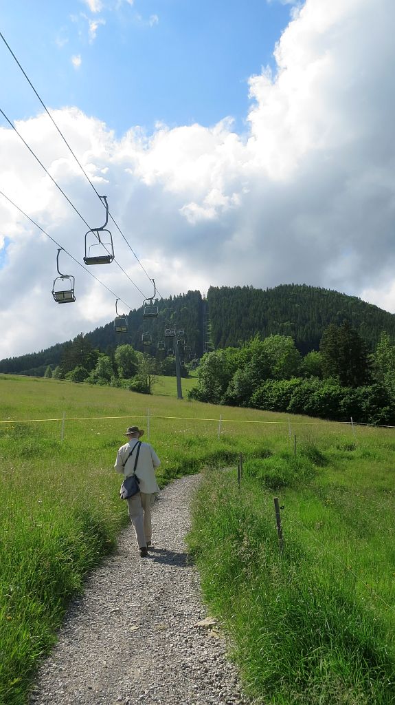 Da uns zum einen der Betrieb am Sessellift zu viel ist und uns zum anderen der Fußweg ganz gut gefallen hat, entscheiden wir uns nach ausreichender Pause, auch den Rückweg zu Fuß zu machen, diesmal aber über eine andere Strecke, das „Steigle“.