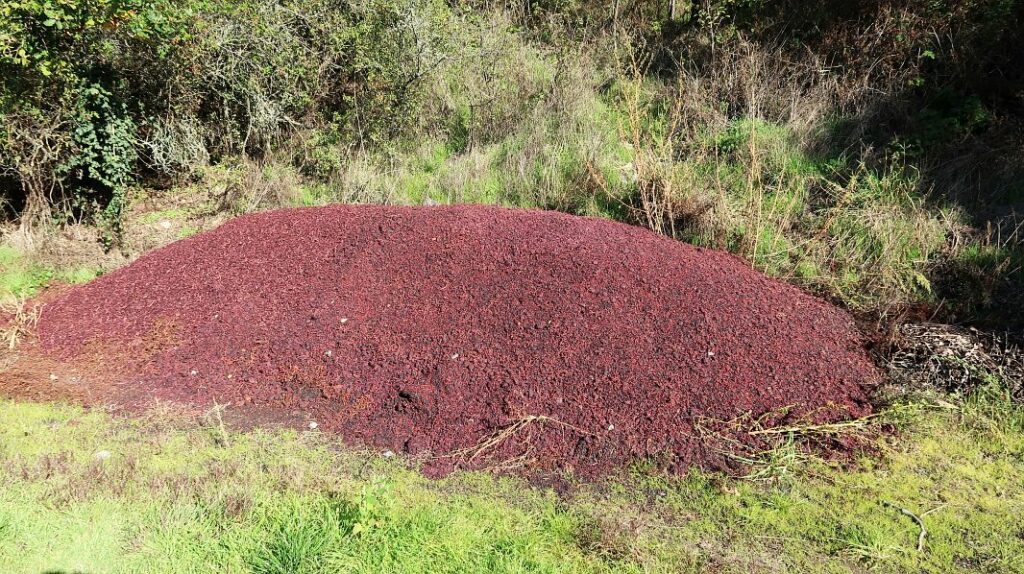 Der Geruch frischer Weinmaische, die hier zur Bodenverbesserung ausgebracht wird…