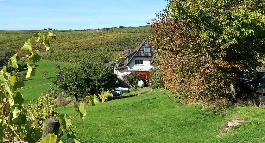 …ist auf dem Rotweinwanderweg schon wieder heile Welt und die Ausflugslokale sind bei diesem Wetter gut besucht, was wir feststellen können, als wir am Altenwegshof ankommen.