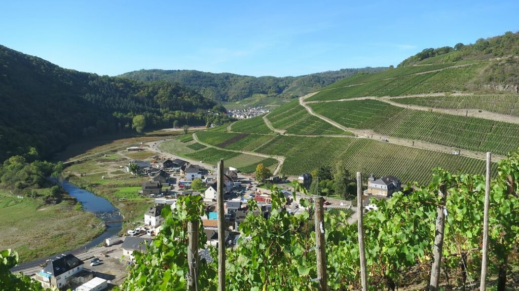 …läßt alsbald vermuten, daß wir uns den Ahr-Weinbergen nähern. Die Reben hängen voll, die Lese steht unmittelbar bevor und der Herbst färbt die Weinblätter in ganz besonderem Stil.