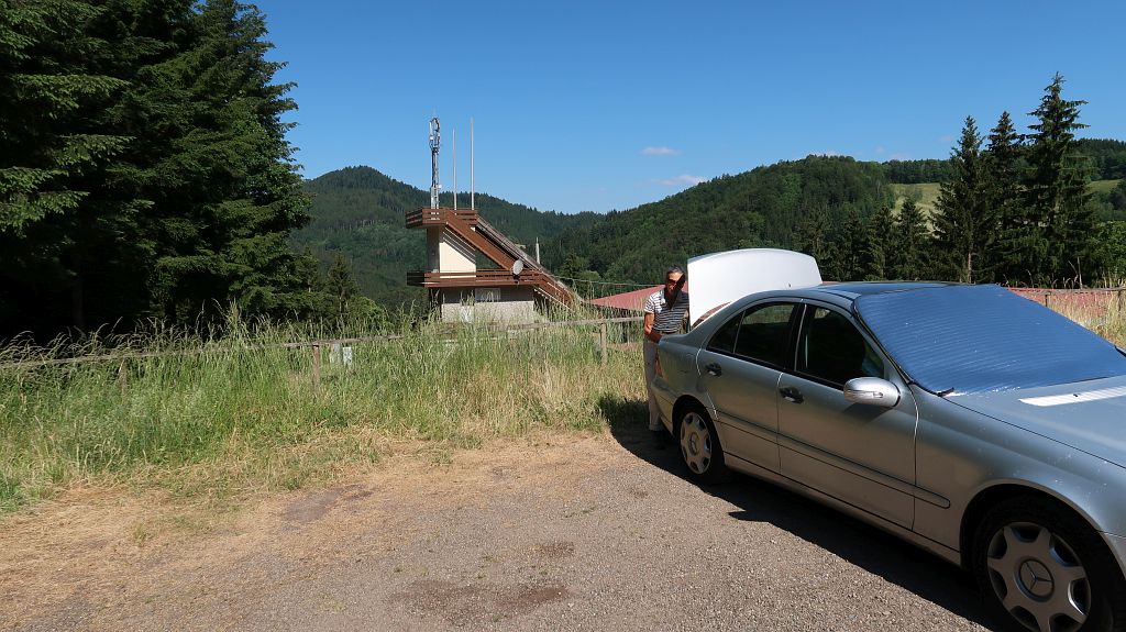 Die Nacht war zu warm und zu laut (Haus liegt an der Durchgangsstrasse), so sind wir schon relativ früh auf den Beinen und parken gegen 10:00h an der Sprungschanze des Nachbardorfs Bad Griesbach.