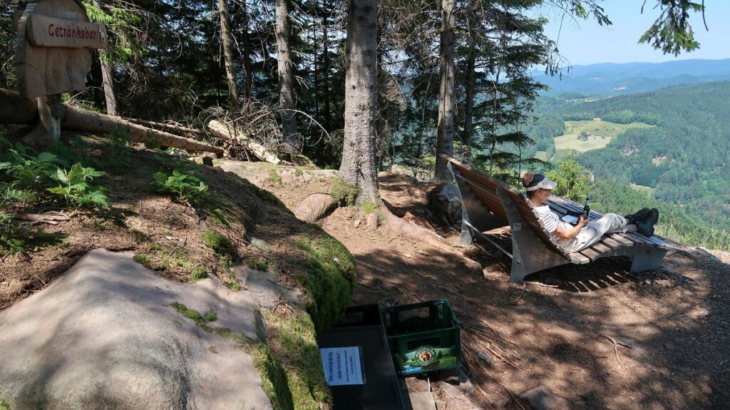 …das eigentliche Highlight ist aber eine „Getränkebar“, die an einem spektakulären Schwarzwald-Rundblick gelegen ist und die täglich mit gekühlten Getränken beschickt wird.